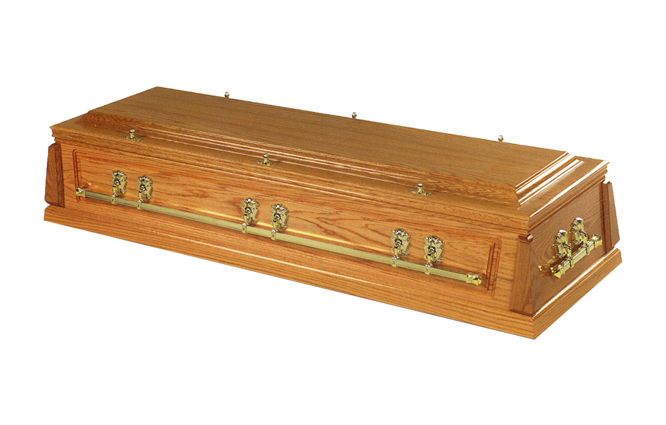 Solid Oak Casket. Golden Oak finish.